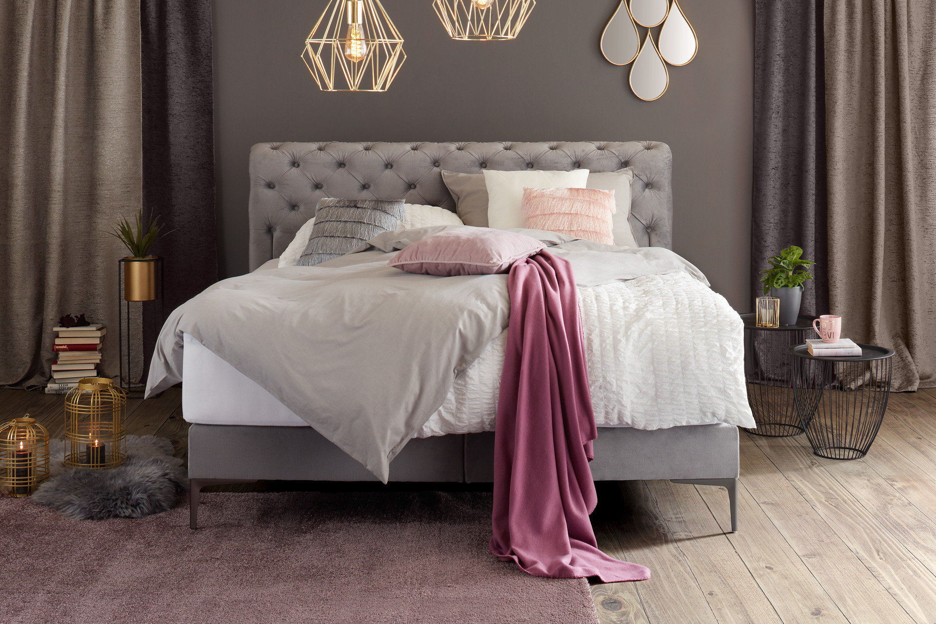 Boxspring Ágy Marcello - sötétszürke/szürke, Modern, faalapú anyag/textil (180kg) - Bessagi Home