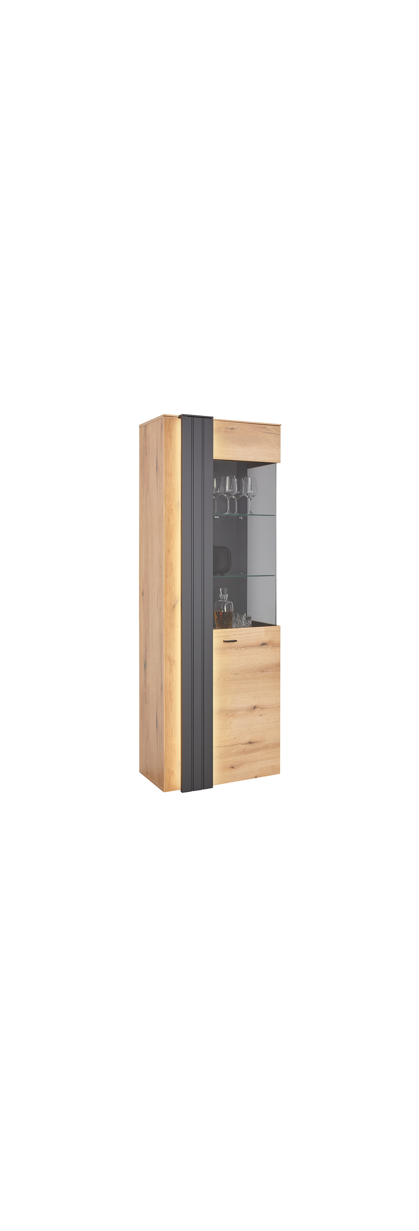 Vitrin Lacjum - tölgyfa színű/világosbarna, Modern, műanyag/faalapú anyag (62,4/197,1/41,6cm)