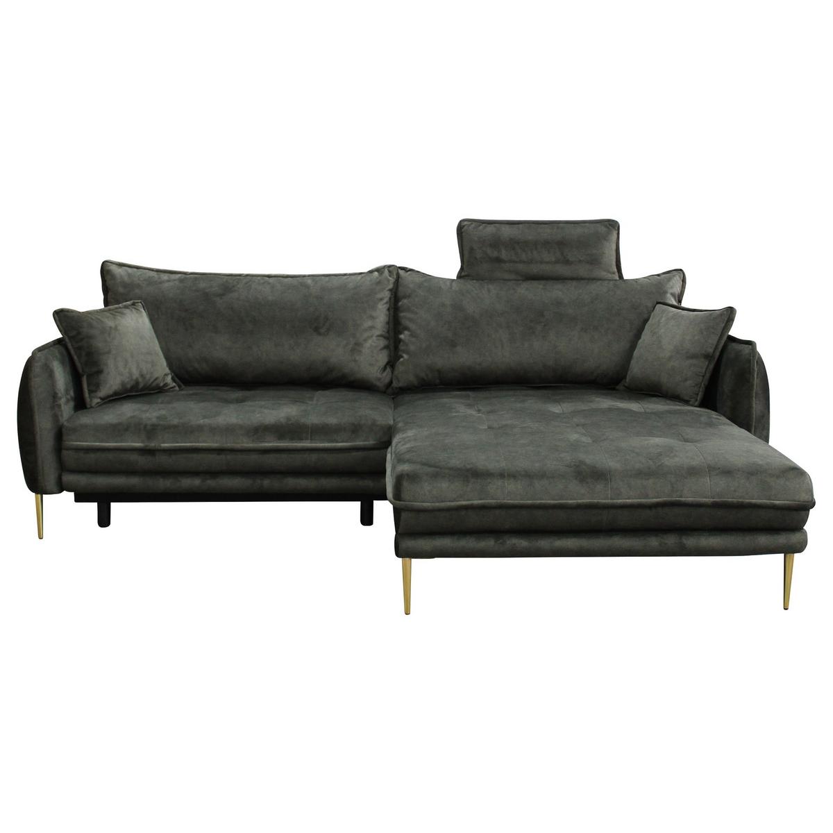 Sarokkanapé, sötétzöld velúrhuzat, ágyfunkció, 2x hátpárna, 1x fejpárna, 2x díszpárna, fehér ágyneműtartó, aranyszínű fém lábak, ülőfelület: nosag rugózat és habtöltet, jobbos ottomán.Szé/Ma/Mé: kb. 260/70-90-119/105-194cmBalos ottománnal is kapható.Egyéb szövetekkel egyedi áron rendelhető, érdeklődj áruházainkban.Áruházainkban lehetőséged van a szövet bevonatú bútorok foltvédelemmel történő ellátására. Ez a szolgáltatás csak áruházainkban érhető el.Részleteket ld. honlapunk alján a "szolgáltatások" - "foltvédelem" alatt, ill. érdeklődj áruházainkban vagy vevőszolgálatunknál.